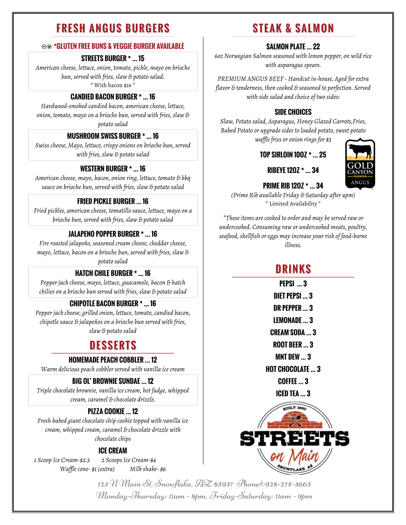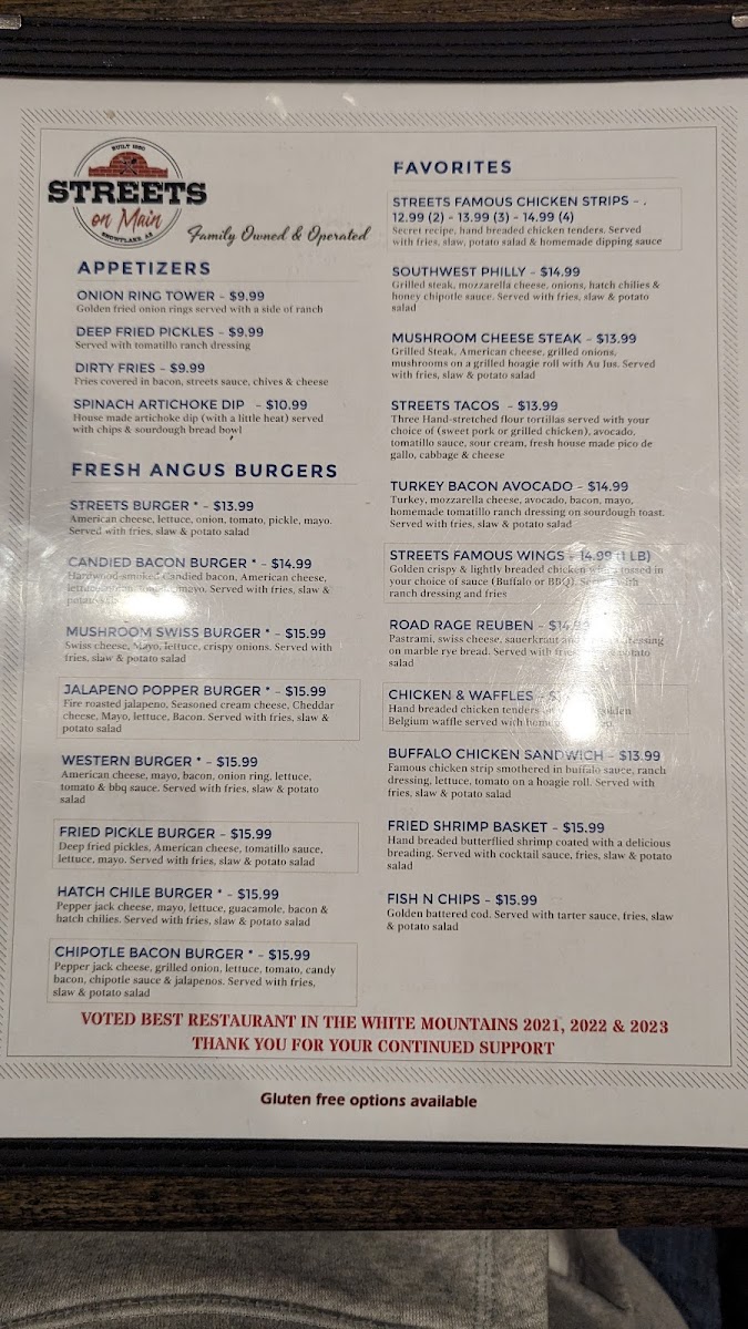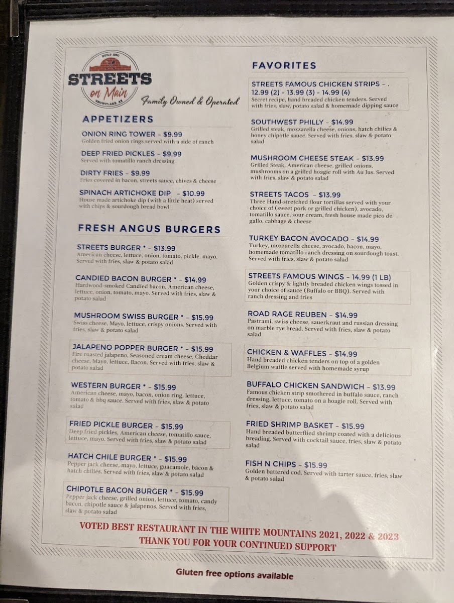 With accolades like "Best of the White Mountains" for four consecutive years, Streets on Main promises a culinary adventure packed with delightful surprises!
